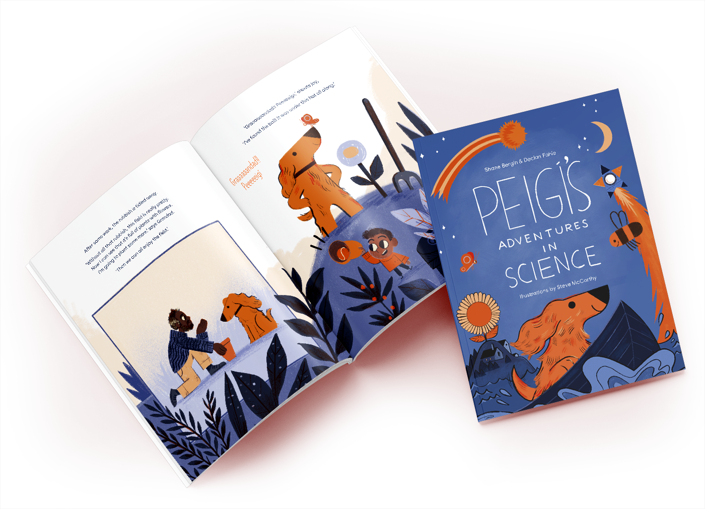 Peigí’s Adventures in Science represents an innovative collaboration between two UCD staff members, Dr Shane Bergin, a physicist and Dr Declan Fahie a teacher educator and former primary school teacher. The four stories offer an age-appropriate introduction to social justice and science themes. Designed specifically for junior classes, issues of fairness and equity, in tandem with science topics like space, travel, environmental awareness and growing things, are explored gently through the medium of story. The central character, Peigí the cocker spaniel, is the common thread throughout the four stories and her adventures provide the young reader with engagement and excitement while highlighting both the everyday nature of science and the importance of treating others with care and consideration.